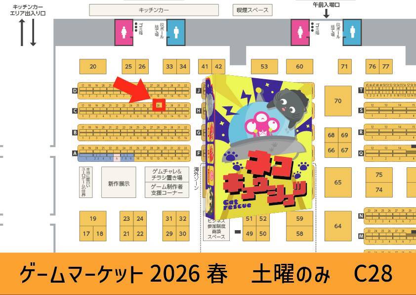 - 新作「ネコキュウシュツ」by 138GAMESのブース番号が「C28」に決定しました。