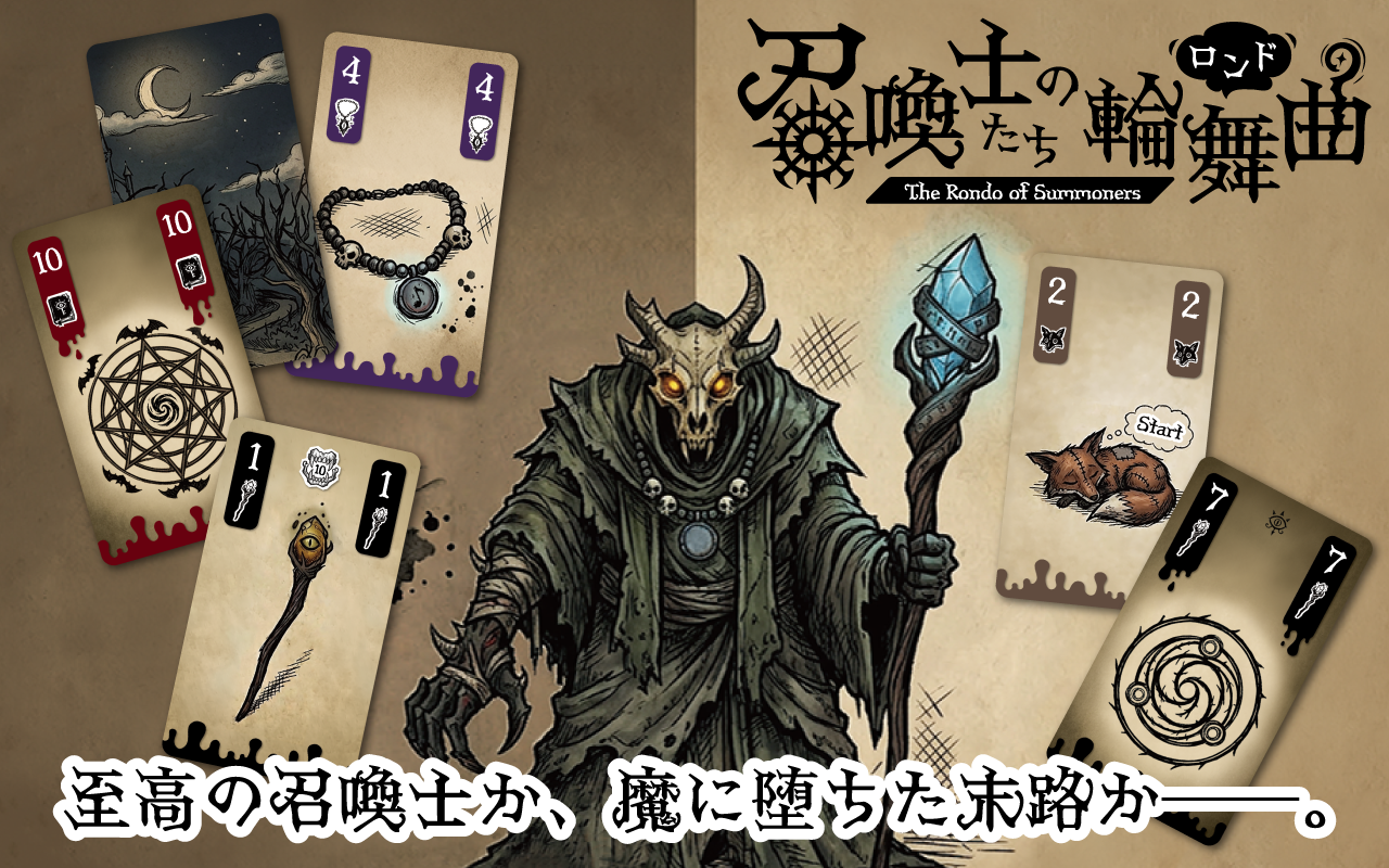 しかし、『召喚士たちの輪舞曲(ロンド)』は、召喚士と魔族の世界に没入してもらえるよう、カードの絵柄やコマでの演出、世界観とシステムの親和性にもこだわっています。