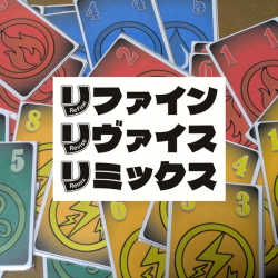 - こんにちは、有限浪漫です。ゲームマーケット2026春の新作カードゲーム『リファインリヴァイスリミックス』のルール説明動画を公開しました! 火・水・風・雷の四大元素を集めてより大きい価値を生み出す錬金術をテーマにしたセットコレクション&トリックテイキングゲームです!▼ルール説明書も公開中です!https://limited-romance.blogspot.com/2026/02/blog-post.html ▼Youtubeはこちらhttps://www.youtube.com/watch?v=qLV-x_cRXQs▼ニコニコ動画はこちらhttps://www.nicovideo.jp/watch/sm46060388