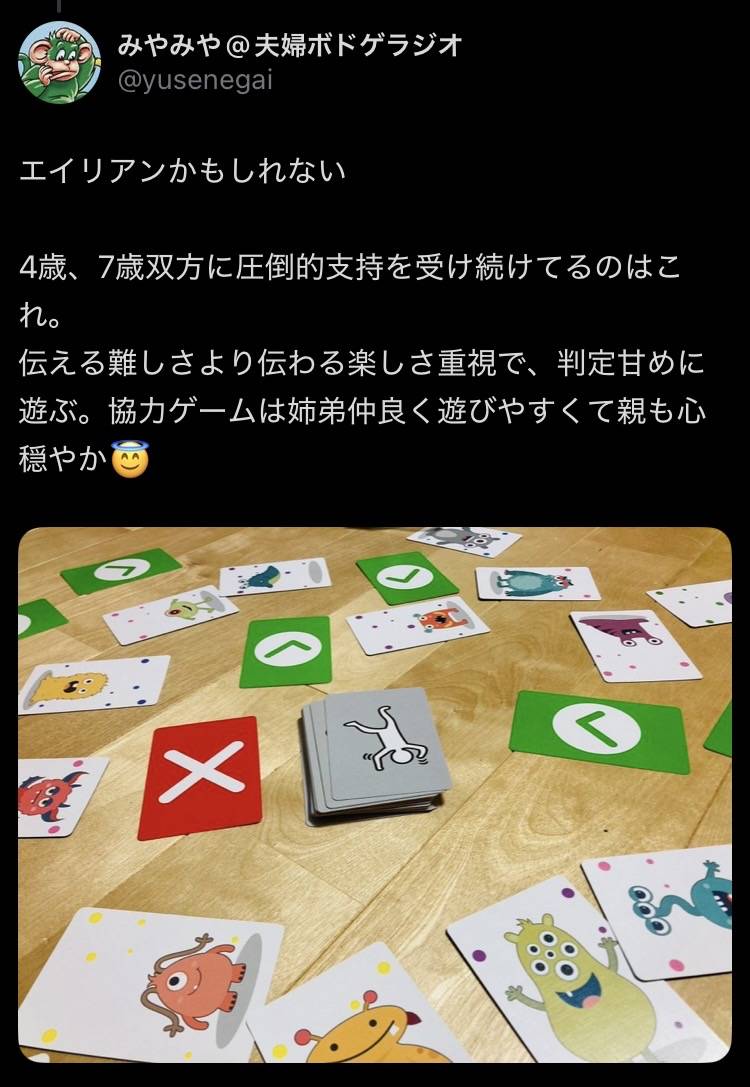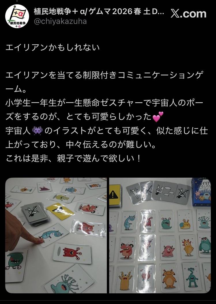 かるたのように、カードの読み手と取り手をそれぞれ分担します。役割を交代しながら、協力して悪いエイリアンを捕まえましょう。詳しくは以下!