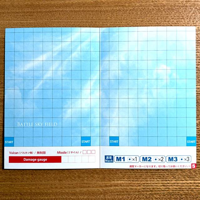 基本はワンセット2枚で二人対戦のドッグファイトです。スピードを操り頭脳を駆使しミサイルとバルカンをどう使用するか。風や天候のように運を左右するのはサイコロの目。ハガキ二枚分のフィールドはまるで空のリングのようにドッグファイトを熱くします。