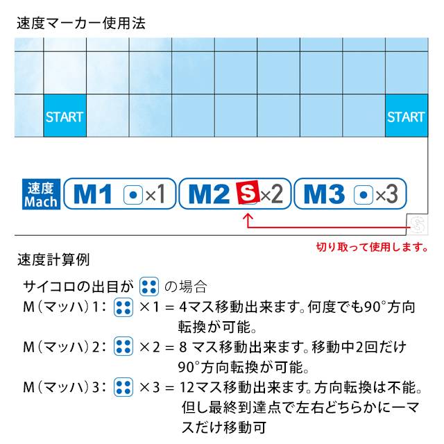◆マッハ1 → 移動数:サイコロの出目×1 自由に何度でも90°旋回が可能です。