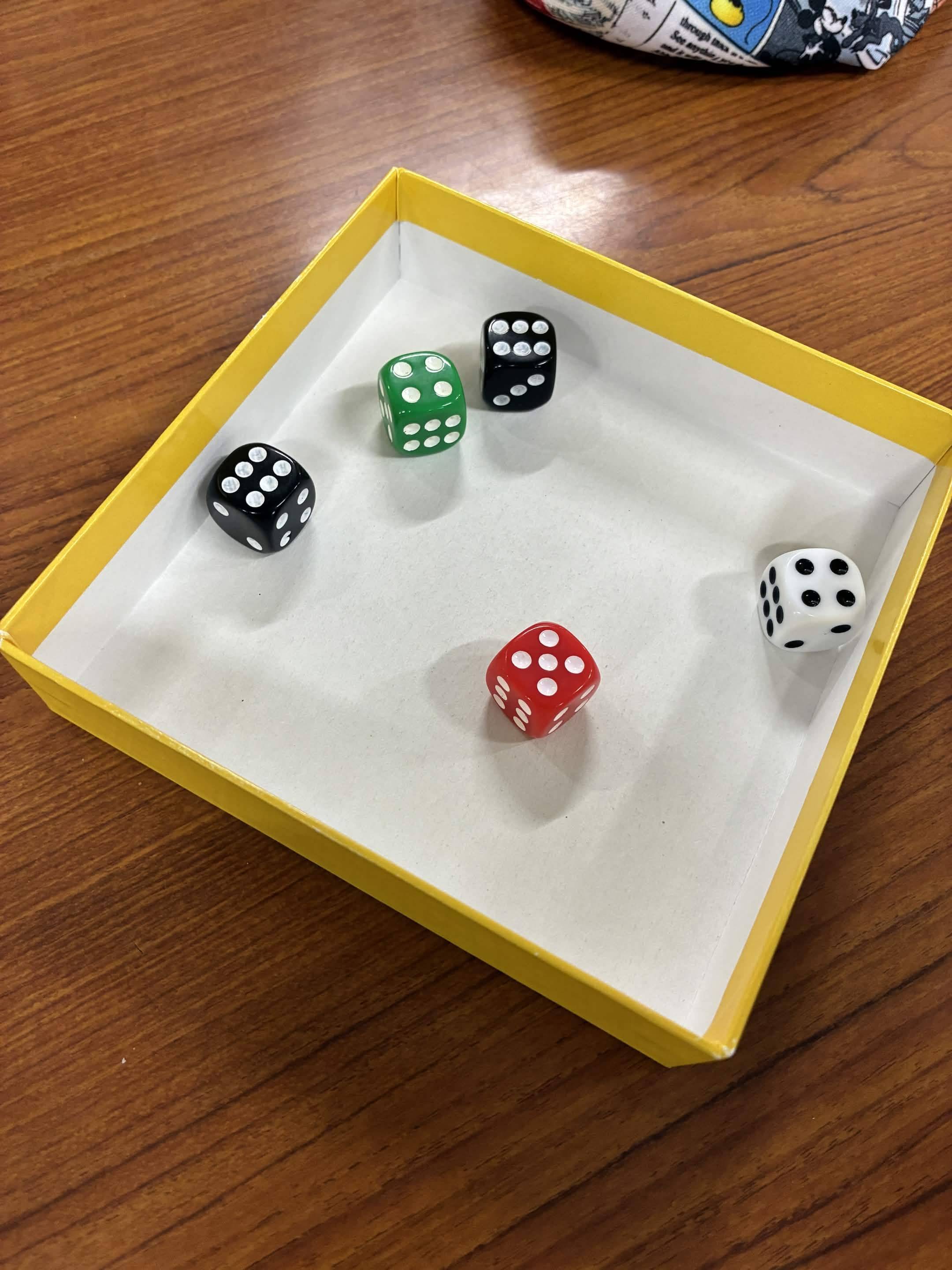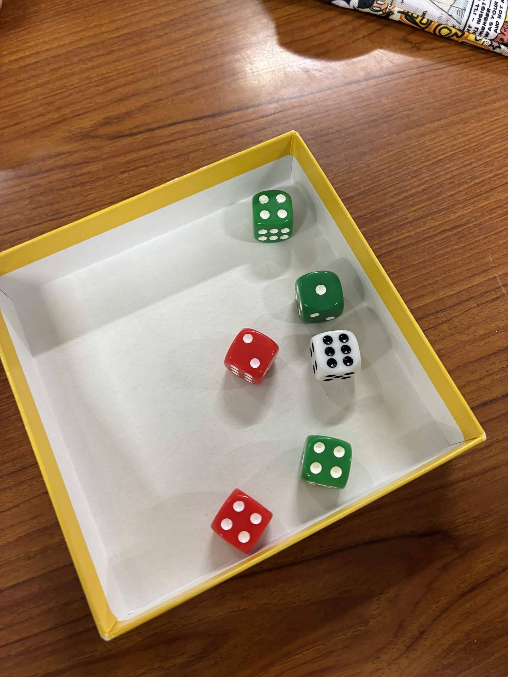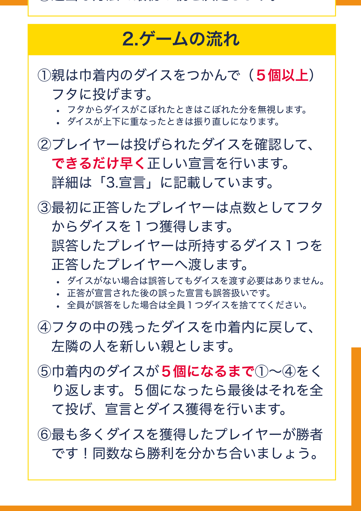 - 5色のダイスの最多の目または色を瞬時に判断して宣言