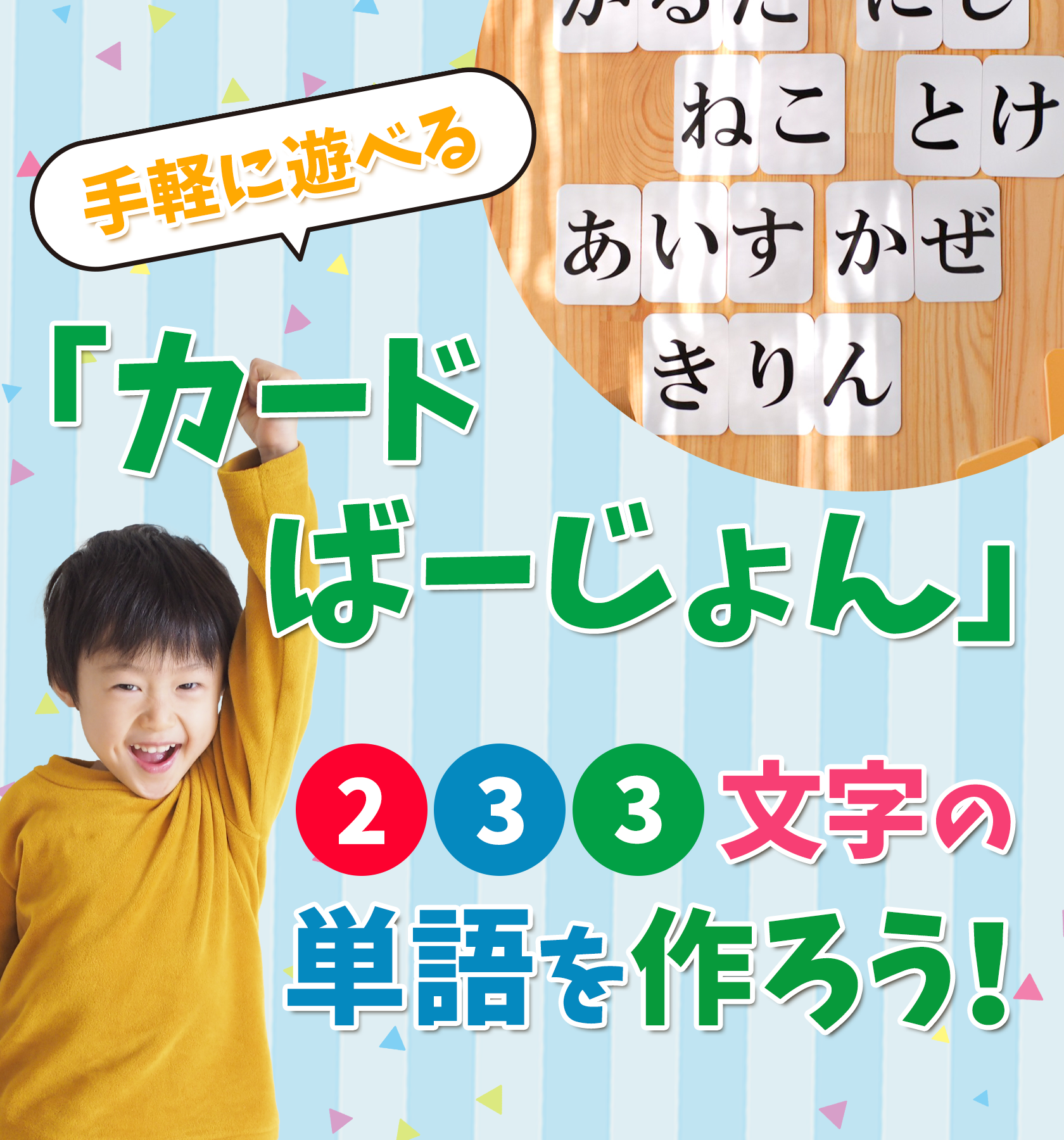- 持ち運びやすいカードサイズで、いつでもどこでも「ことば作り」を楽しもう!