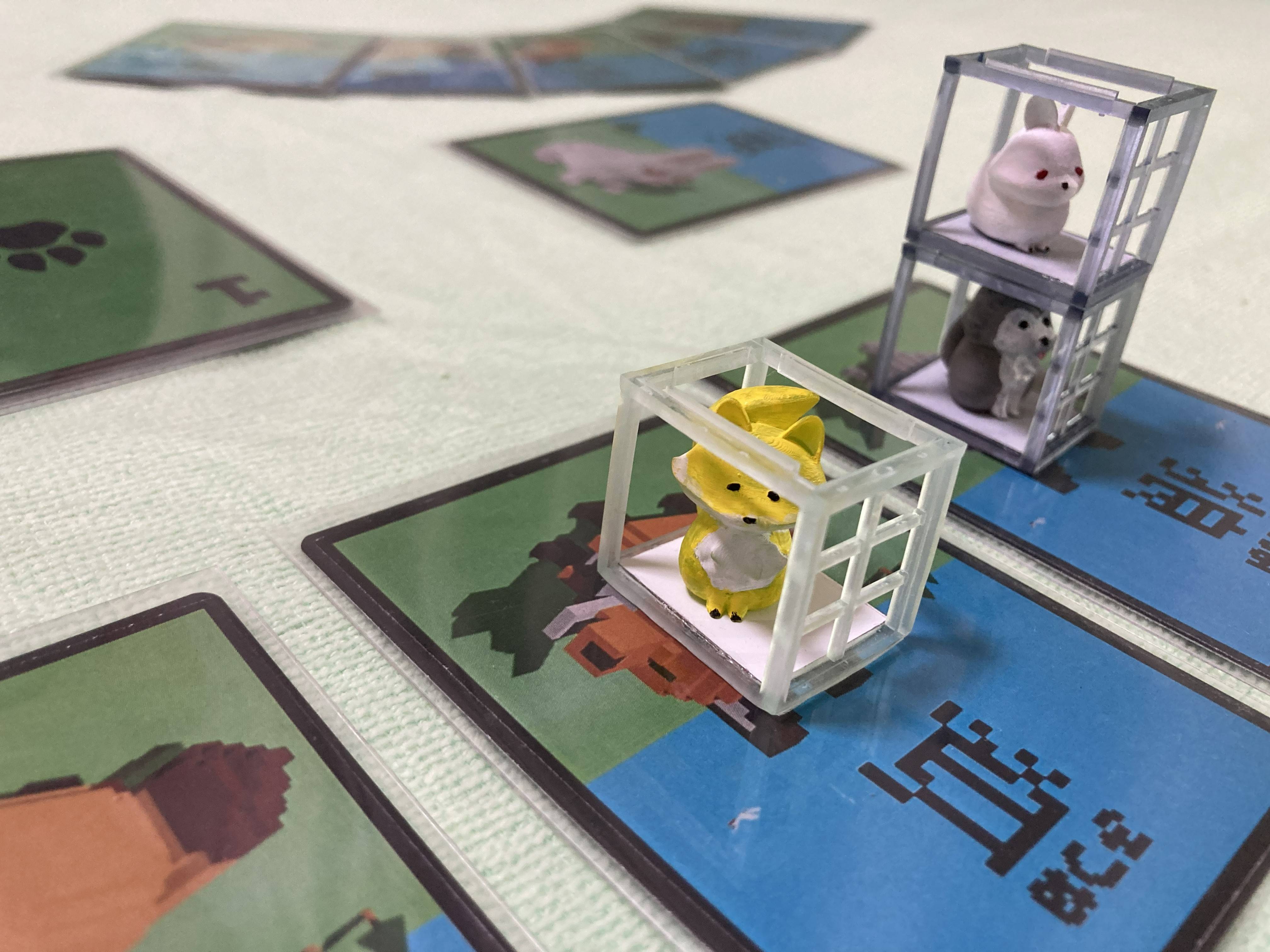 プレイヤー全員が協力し、動物たちを動かして「お題」の形に重ねることを目指すゲームです。