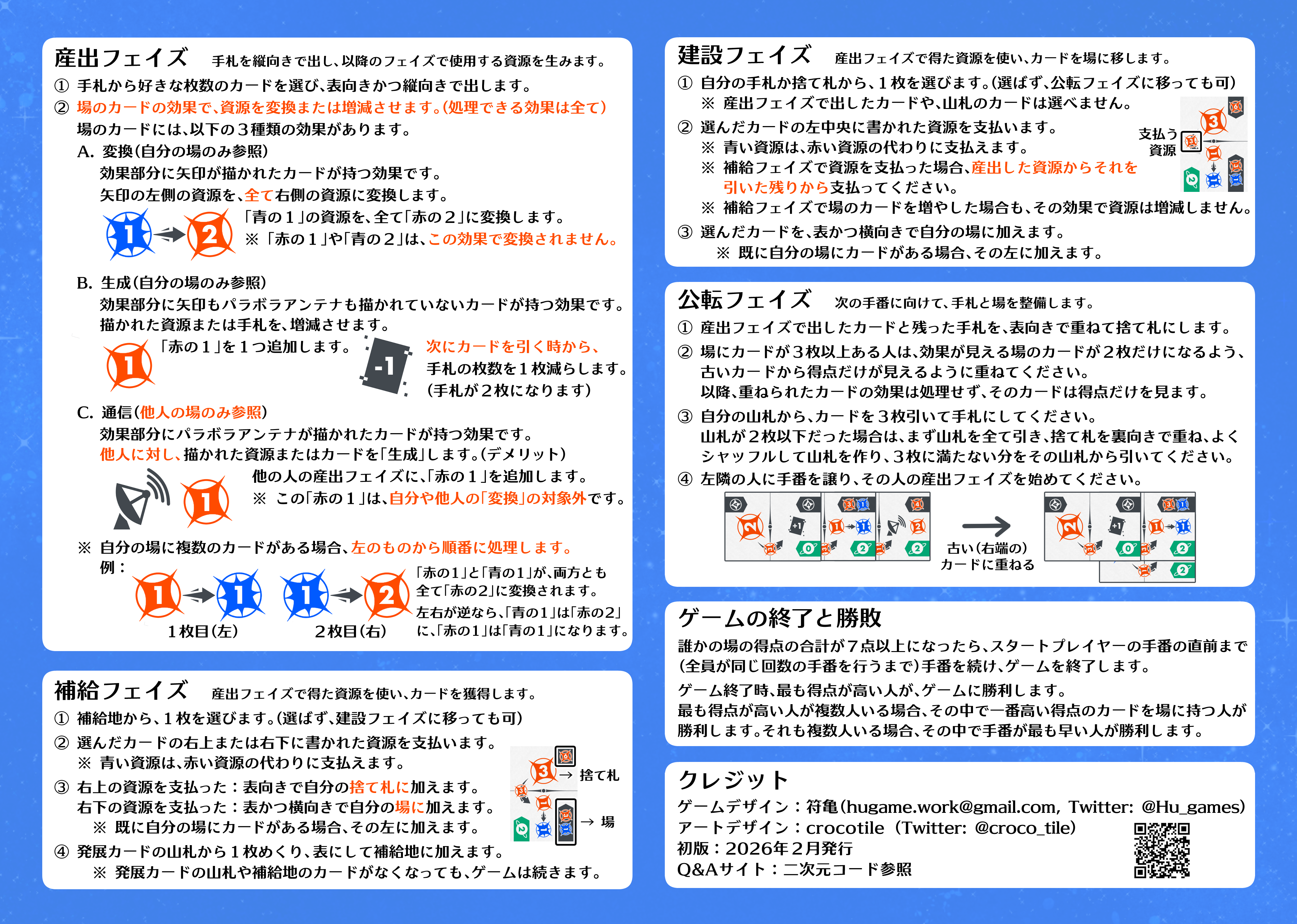 ゲームマーケット2026春、1日目土曜日のT45「符亀」ブースにて頒布予定です。