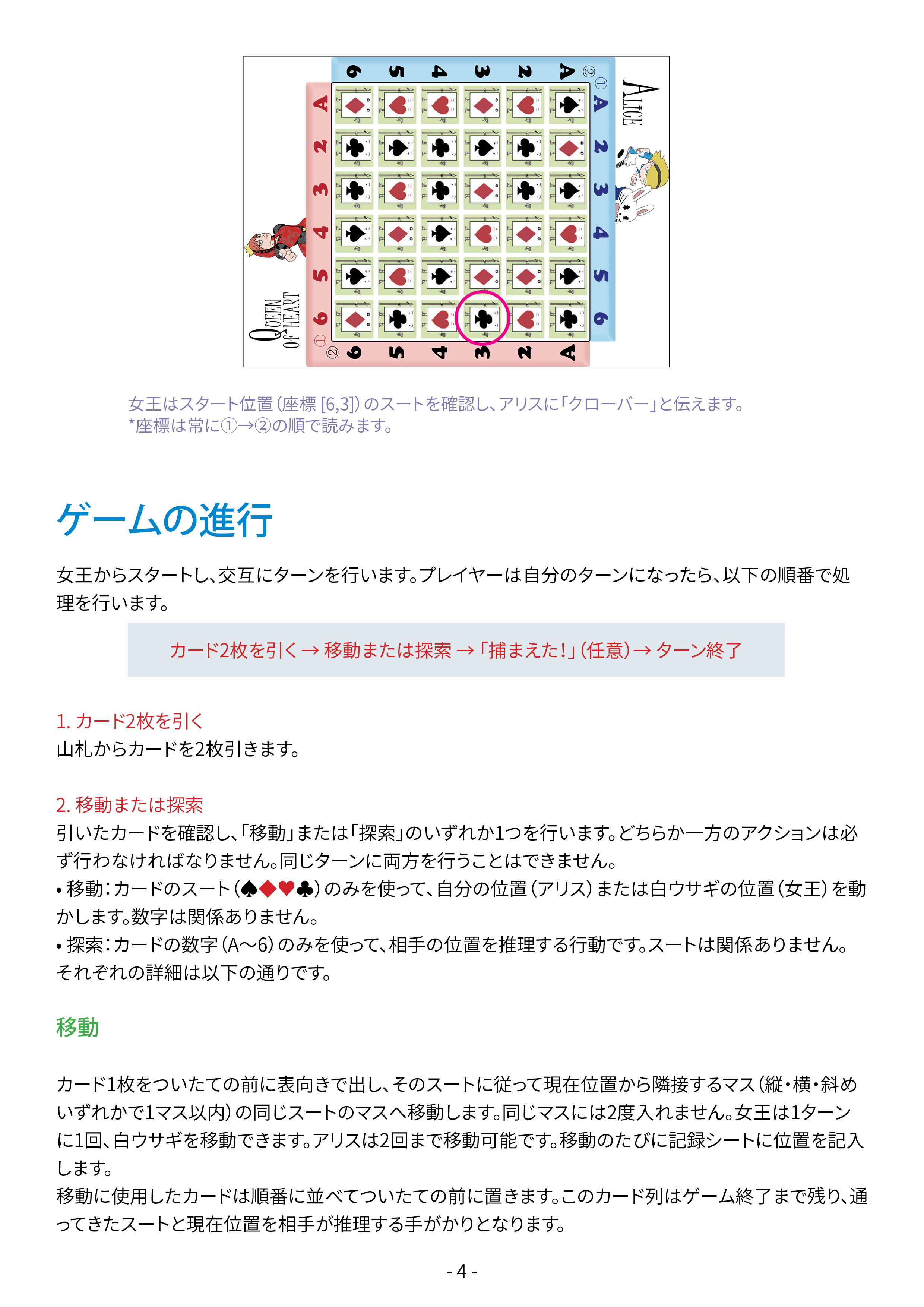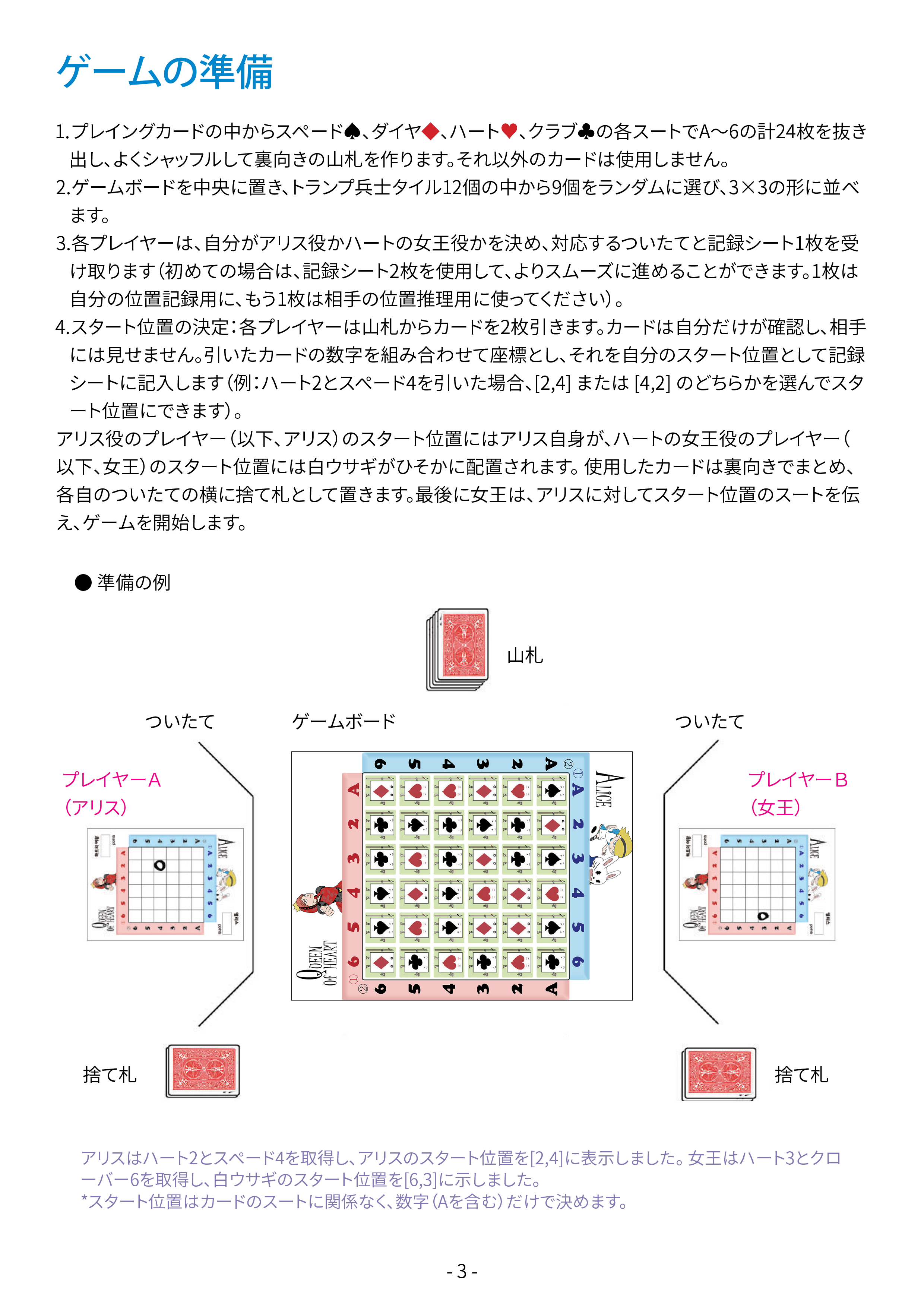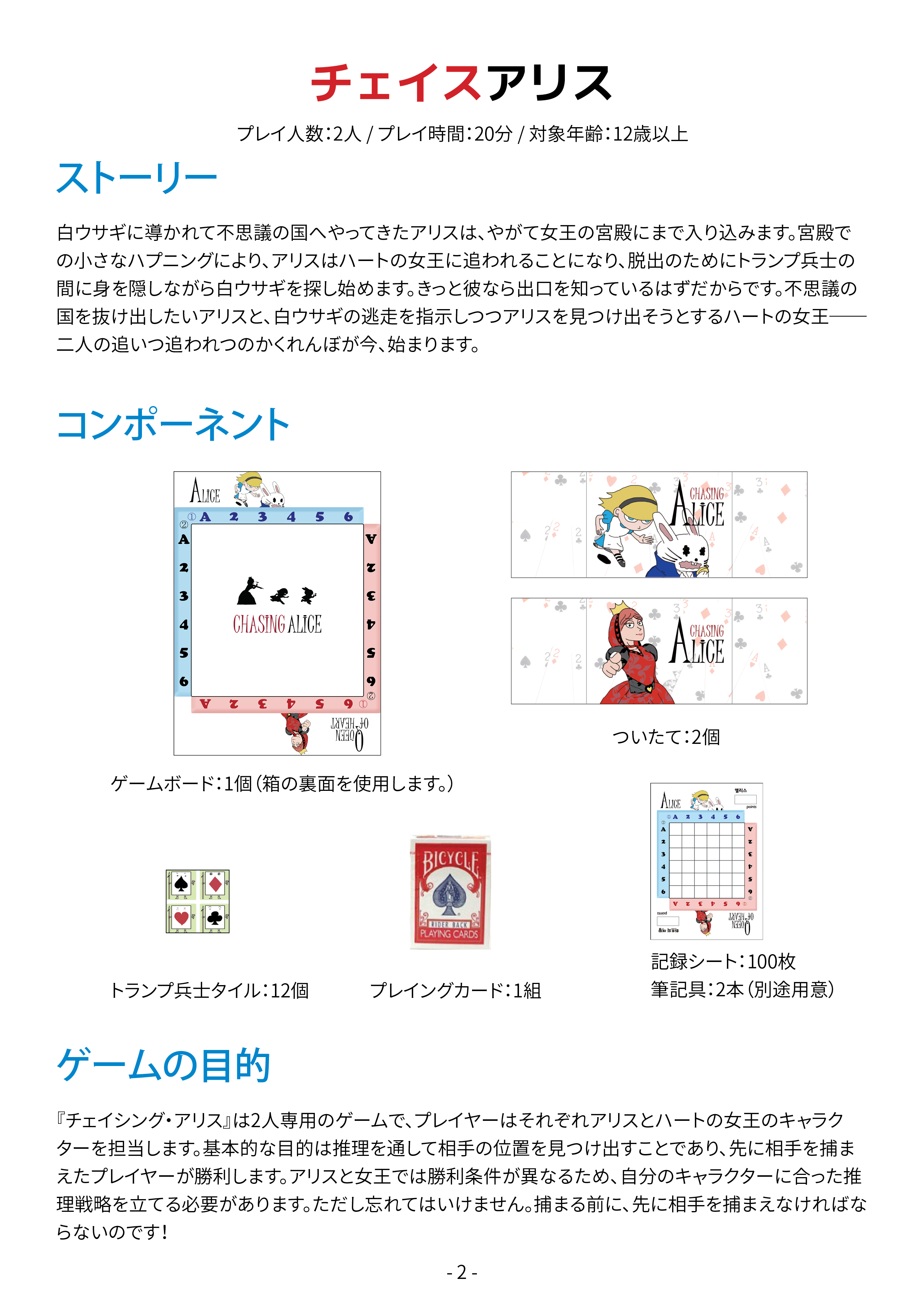 アリスとハートの女王が対決する、2人用の推理ゲームです。