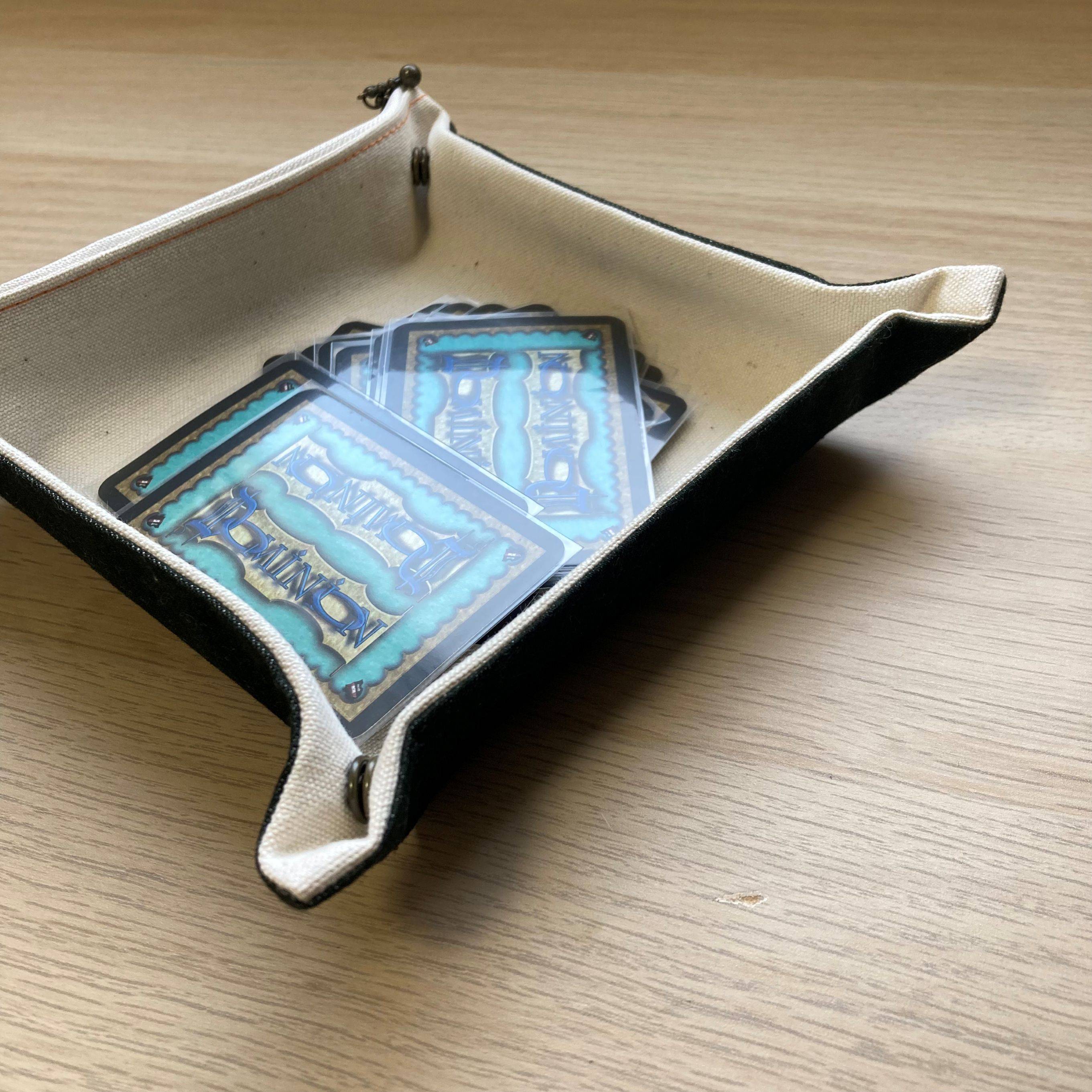 ゲームブックやダイスを収納できるポーチが、ダイストレイに早変わり✨